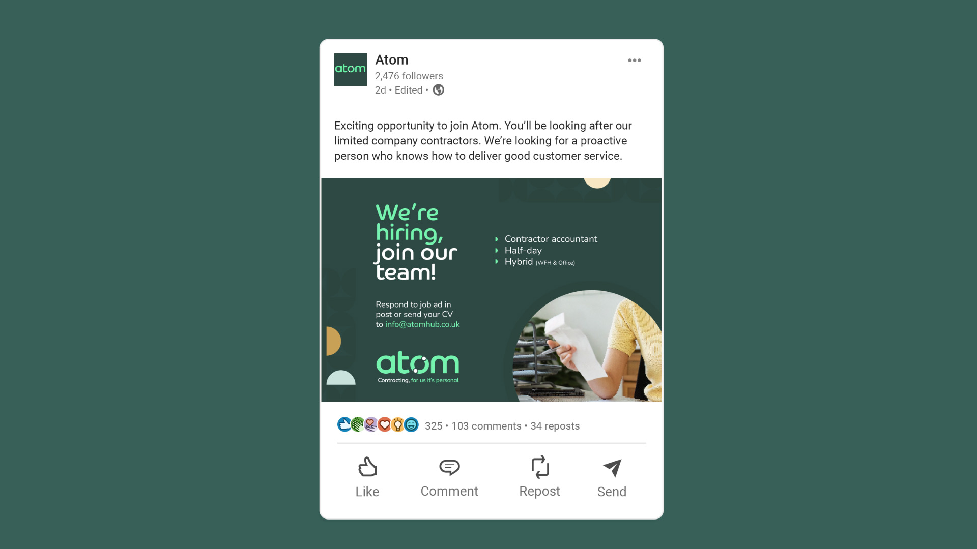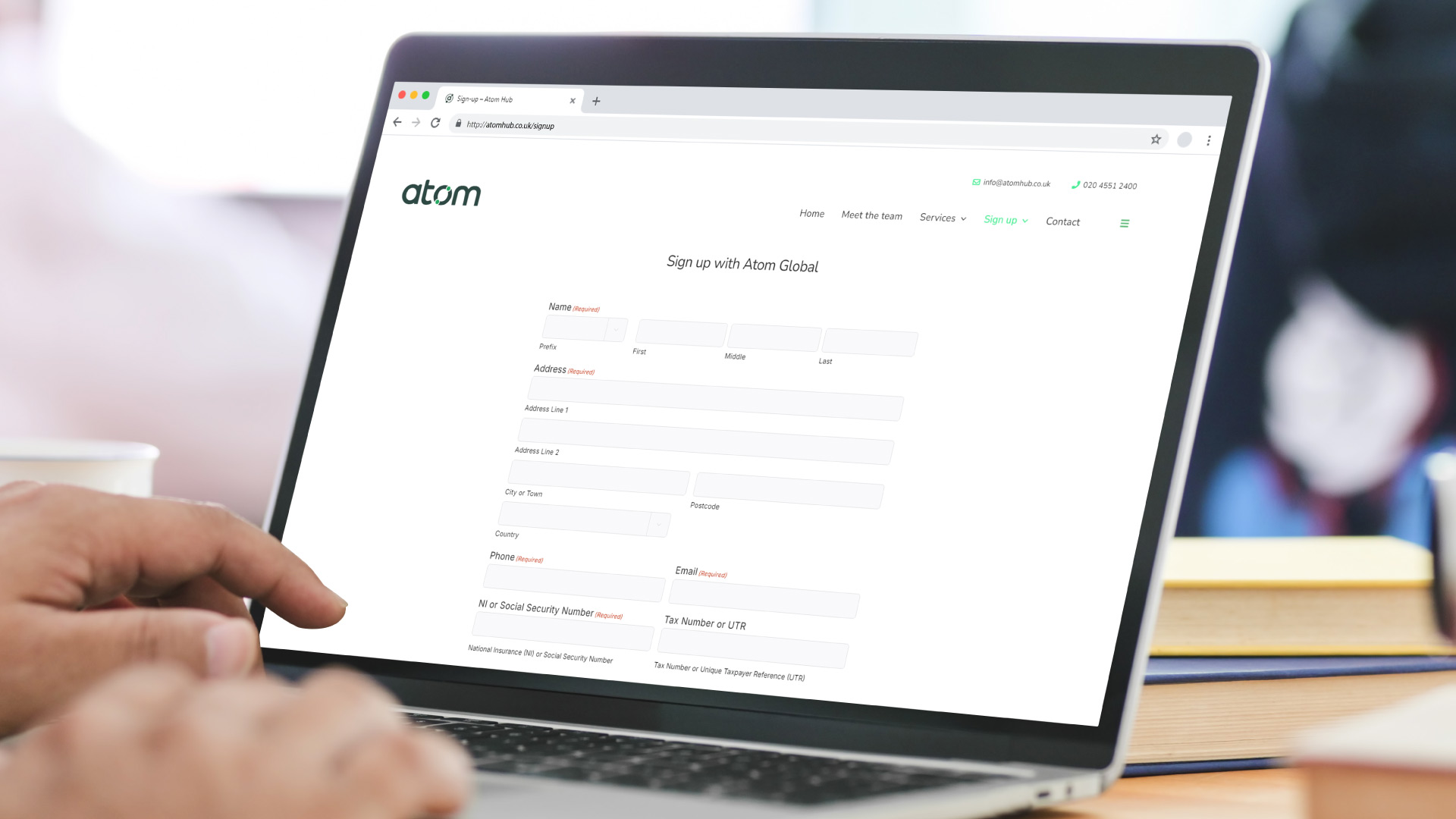 Identity, website, CRM implementation, software consultation, marketing email formats, stationery, web forms, and further document formats for Atom.