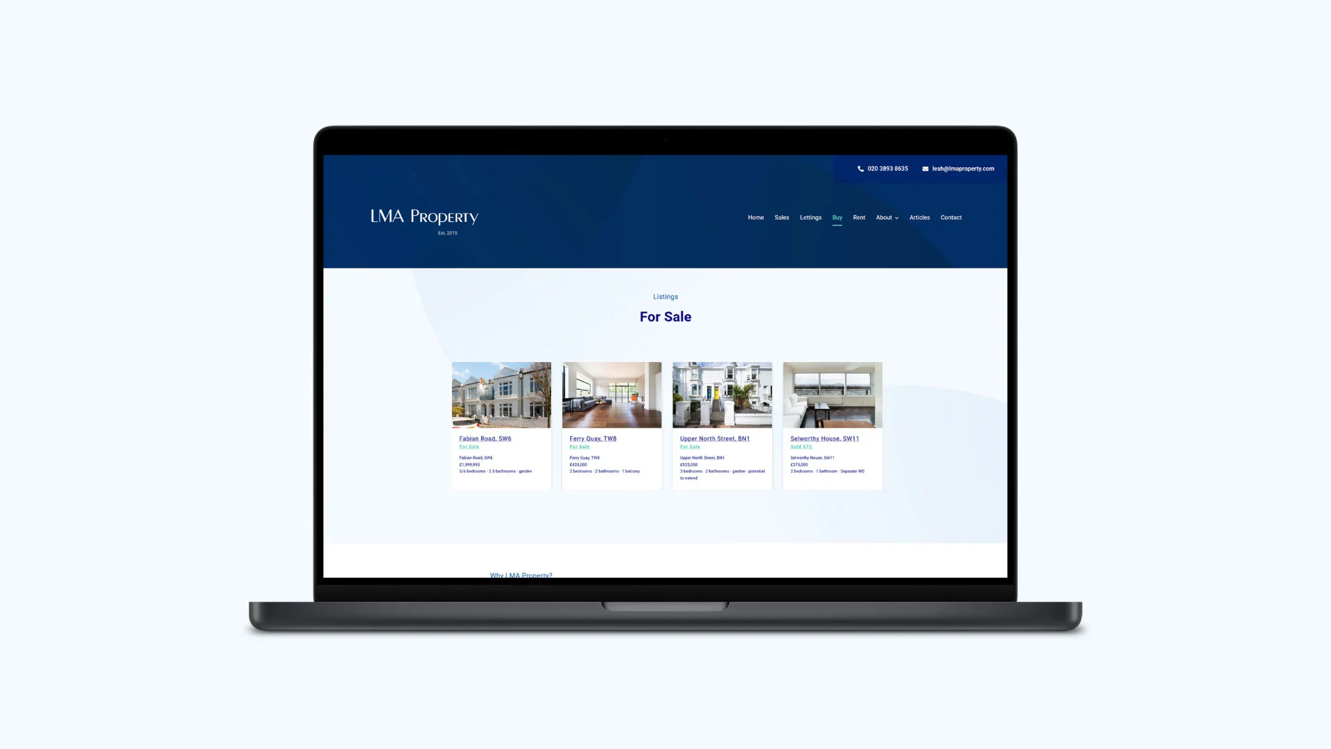 Website with easy edit, custom property listing functionality for estate agent property sales and lettings.